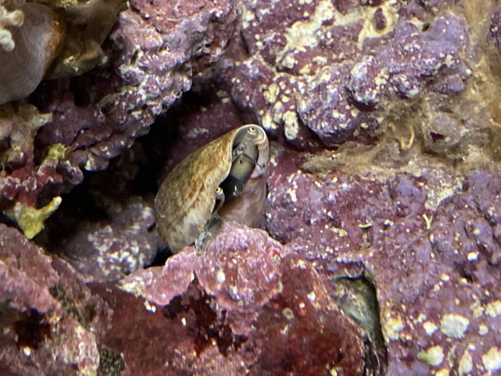 ライブロックの隙間に落ちてキモイ状態のマガキガイくん、本当にきもいな